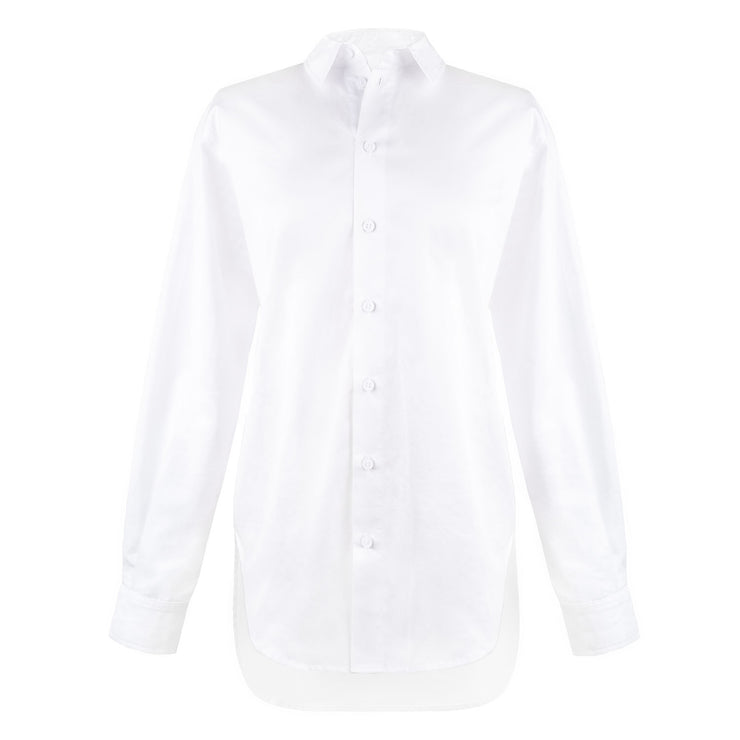 We will be the first to admit: noone needs just another white shirt. But this one is so much more. As with many of our designs, it all started because we could not find a perfect one for ourselves. We wanted the perfect cotton: not too thin, not too thick, just the right crispiness. We wanted a perfect collar: both in shape and construction, so it keeps looking sharp after many washes. Above all, we wanted luxury quality and craftsmanship, which translates into that nonchallant yet super chic, iconic look. Think luxury mens shirting, tailored and made to measure in the finest cotton. We tried finding that quality in womens shirts and we couldn't. So we made one. Now you also have a chance to own a very special shirt, tailored for you in a luxury atelier, at an affordable price. So we can certainly say: this is not just another white shirt.