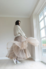 Made with 7 meters of weighless tulle, set on matching colour silky underskirt, our Magia skirt is nothing short of magical. Despite its dramatic effect, this skirt is designed to be versatile, and will work equally well day or night. Style it with pin thin heels for parties or sneakers for a casual day look. Pair it with a slim fitting top to create a stunning silhouette, or add a denim jacket for a relaxed feel.